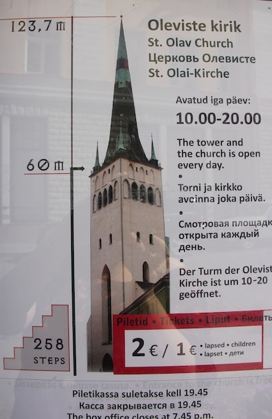 Entrance to the church is free, but a trip up the tower will cost you 2 Euro (1 Euro for kids, but why anyone would choose to take their child to this place is beyond me). Like many things in life and travel, the journey up the church tower is as impressive as the view from the top: the steps are carved out of solid stone, with nothing supporting them but the awesome strength of the stone itself. Not a great time to ponder whether Estonia sits on any major fault lines.